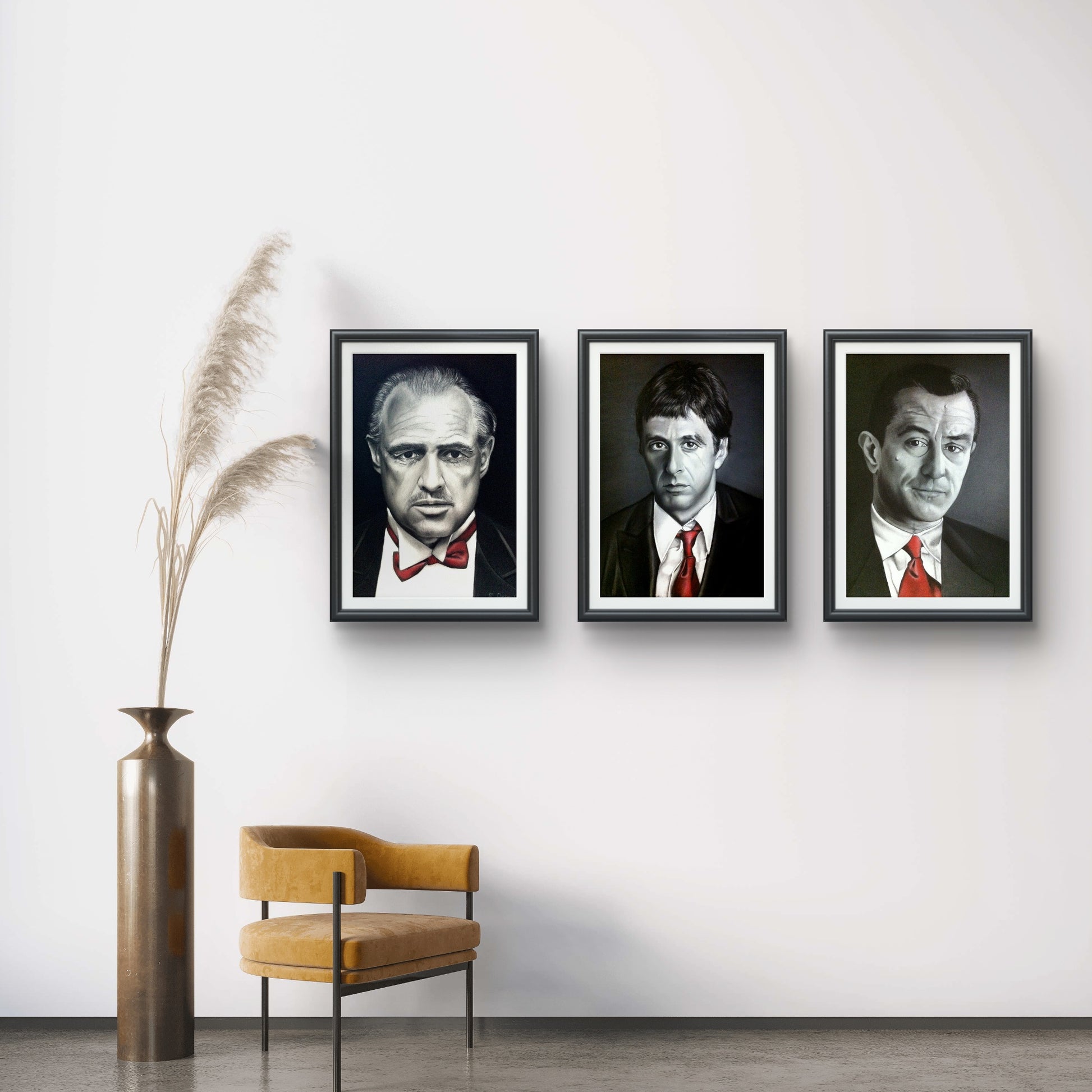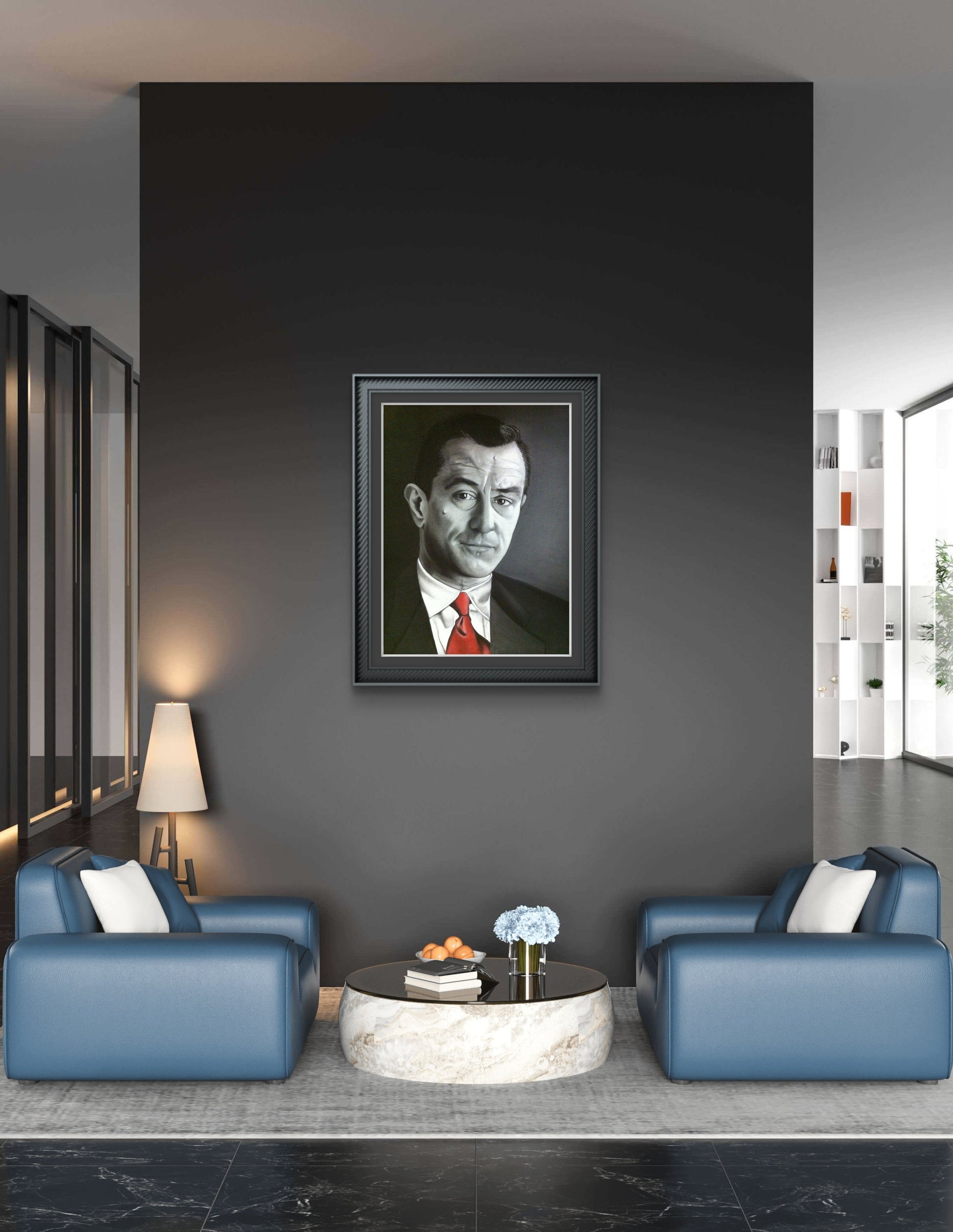 This pastel portrait of Robert De Niro captures the iconic intensity and subtle charisma that define his legendary presence on screen. The focused gaze, furrowed brow, and iconic smirk are brought to life with sharp contrast and masterful shading — complemented by a striking red tie that symbolizes power, danger, and legacy. A tribute to one of cinema’s greatest, this piece radiates quiet strength and commanding elegance.